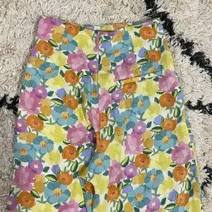 Zara Spring Color Floral Satin Wide Leg Pants