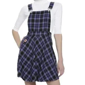 Royal Bones Daang Goodman Tripp Purple Plaid Skirtall Overalls Dress Size L - NWOT