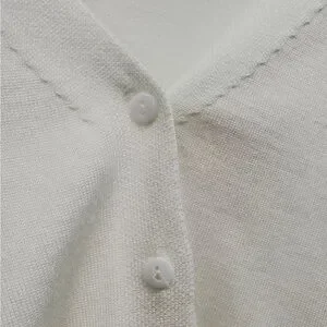 The shrug cardigan features nine point length sleeves, v-neck top, buttons placket and cropped design