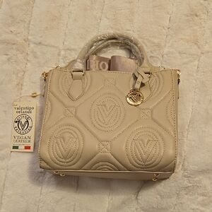 Elegant Valentino Orlandi handbag in a chic beige color. Crafted from vegan leather, this stylish bag is perfect for any occasion.