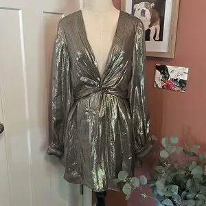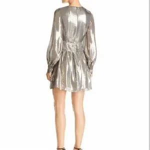 Ramy Brook Elise mini deep V plunge mini silk metallic draped lined 6 dress