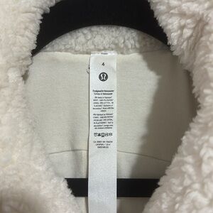 PERFECT condition! Worn a couple times. Size 4. Lululemon tag did come out but the jacket is still in great condition!