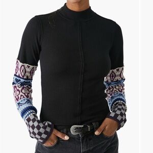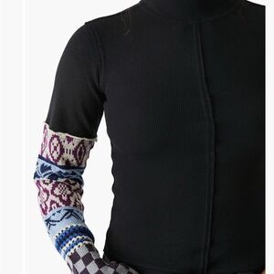 Fair Isle WHITE/Ivory Combo sweater knit sleeves frames this thermal knit t-shirt made with cotton kissed threads and reverse-seamed details. Runs small. See photos for approximate measurements. Added extra photos (of black shirt) to details