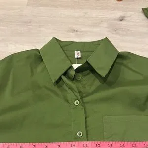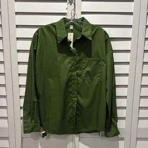 Order Plus NWT Green Button-Up Shirt with long sleeves.