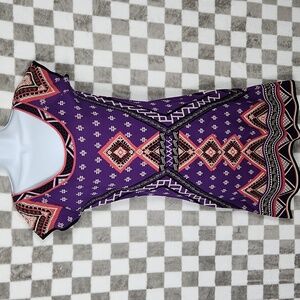 Miami boho print knit dress NWT pink purple black Aztec shirt sleeve L