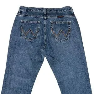 Wrangler Straight Leg Juniors Womens Jeans 11 12 32 Medium Wash Pockets Logo