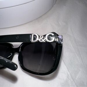 Dolce & Gabbana black sunglasses. There is a little scratch and something going on with the bottom of the lenses. Like the film is separated from the lenses. Doesn’t affect use. See photos.
