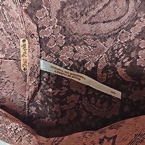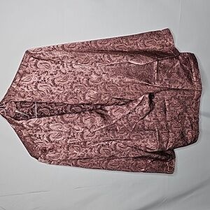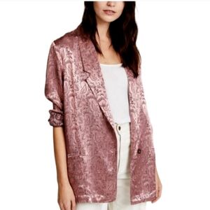 Free People silky jacquard paisley long one button pink purple blazer jacket S