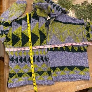 Bundle up in this so cozy cardi, featured in an oversized slouchy silhouette with exaggerated collar detail and statement geometric print throughout for added dimension.