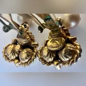 Hattie Carnegie Signed Faux Pearl And Diamond Antique Style Vintage Earrings
