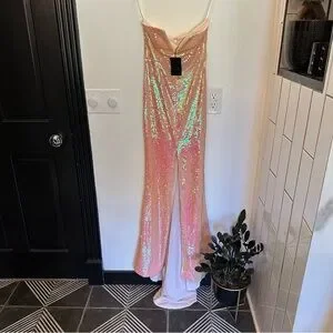 Nwt NBD (Revolve Brand) Dreams From Yesterday Sequin Gown in Electric Peach
