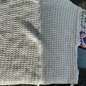 Cute sweater. Crocheted. Granny square. Short sleeve. Crewneck. Size small. Very good used condition.