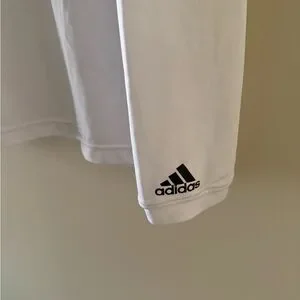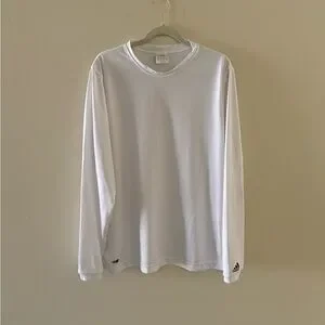 This adidas long sleeve tee features a classic round crew neck and is crafted from a soft lightweight fabric for ultimate comfort. The solid white color and relaxed fit make it a versatile choice for casual wear.