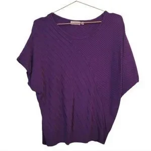 Joseph A | Short Sleeve Ribbed Round Neck Sweater Top Blouse Purple
