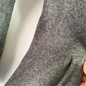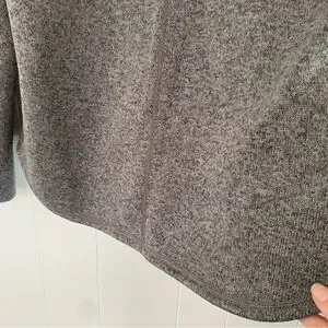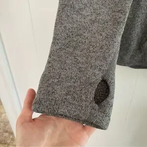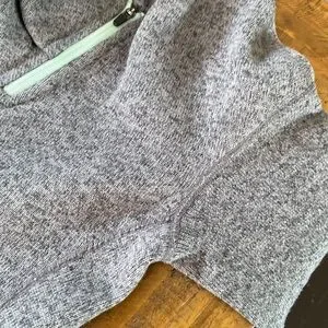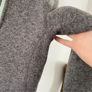 Supremely comfortable, Sweetwater’s wide neckline and unique front zipper allow for easy on-and-off. Features include princess seam lines, a drop tail hem, and a ruched collar with a contrast zipper at the neck. Thumbholes provide additional warmth when the temps drop. Great condition with some fuzzing. Size small.