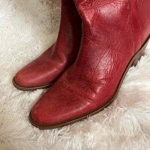 Charlie 1 Horse red leather boots artisan crafted in Brazil. The perfect western boot. Size 9.5B, I would say true to size. Everything is in great condition. Cute heart cut outs in the design (shown best in 2nd picture). Heel is about 2 inches.