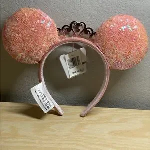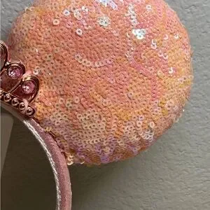 Pink orange sequin ears with crown detail