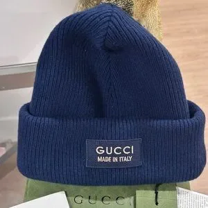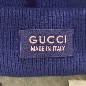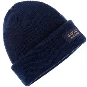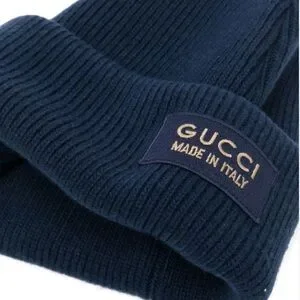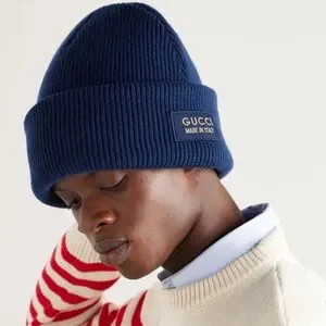 -💯 Wool Patch Beanie featured ribbed pattern and cuff design with Gucci Logo Patch.