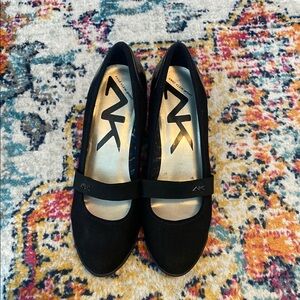 Anne Klein Sport Women Size 10 Black Wedge Mary Jane Shoes