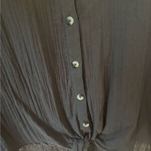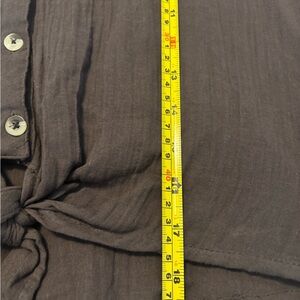 Kensie brown Button-Up cropped tie front top SZ L NWT long sleeve 100% cotton