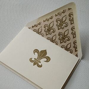 Handmade Gold Fleur-de-Lis Blank Card and Lined Envelope