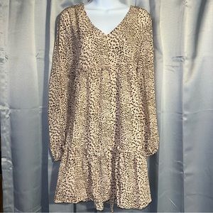 Dalmatian Print Frill Trim Chiffon Smock Dress in Apricot (L-8/10). V-neck, long sleeves, loose fit short dress. 100% Polyester. Description and measurements in pics. Brand new in original packaging. Didn’t come with tags.