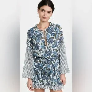 Gorgeously designed with a patchwork print, hints of metallic shine, and a frilly skirt, this MISA dress is a mini that's made to make your everyday looks feel extra special.