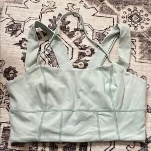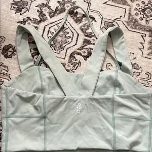 Experience comfort and style with this mint green fp movement sports bra. Excellent cond. There is one tiny spot not noticeable in the back as shown in pic