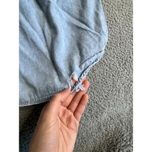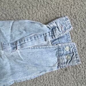 condition is gently used. one tear on the very bottom hem on the back. four white stains on the sleeve hem. fading on the inner collar. all garments have been washed.