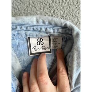 Vintage Bill Blass Button Shirt Large America Long Sleeve Blue Red Western Rodeo
