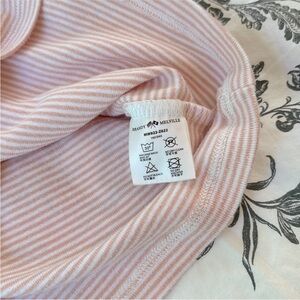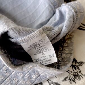 Bundle of two Brandy Melville Skylar cropped tank tops. One is light blue with floral print and eyelet detailing and one is pink and white striped. 100% cotton.