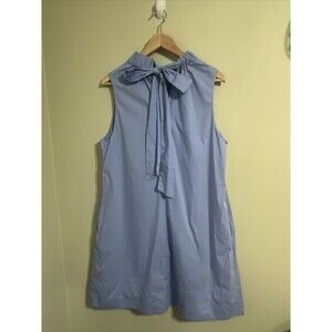 This 1901 shift dress in purple is perfect for a casual occasion in the summer or spring. The dress is made of stretch cotton poplin fabric, which makes it comfortable to wear and easy to move in. It features a mock neck and bow accents, adding a touch of elegance to the knee-length dress. The dress is sleeveless, making it perfect for warmer weather.
