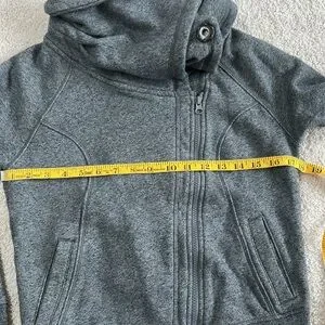 Cute warm jacket that can be snapped with the collar up around your neck for warmth or open and laid down. Asymmetric full zipper. Pockets on each side. Ribbed cuffs and hem. Soft fleece lining. This jacket is in excellent used condition with no flaws. Soft and warm!