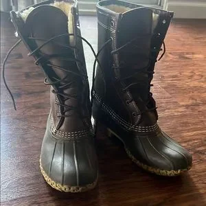 Women’s size 7 LL Bean shearling lined brown all weather boots. These are pre owned but in great condition (I haven’t worn them much since moving to a different climate). I am a size 7.5 and these fit me perfectly.