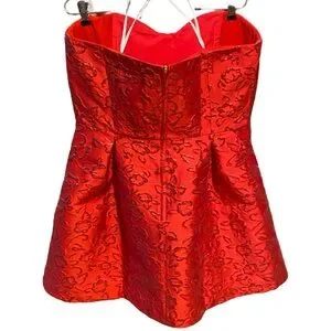 NWT. The Lily Pulitzer “Kataleya” floral jacquard strapless dress. Amaryllis Red. Size 16. An oversized bow at the bust brings voluminous shape to the strapless boned bodice of the box pleated dress. Textured metallic floral pattern. POCKETS!!! Partially lined. Care and content label pictured.