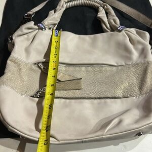 B. Makowsky Beige Suede and Leather Shoulder Bag