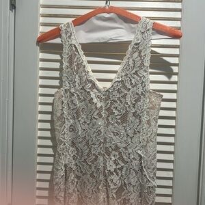 Xscape formal ivory lace dress with nude underlay. Size 8. EUC. Unaltered. Any questions please ask.