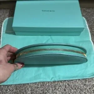 Tiffany & Co Half Moon Wallet. It Has Color Transfer Throughout. It can be cleaned. Includes Dust Bag and Box.