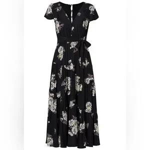 Free People All I Got Maxi Length Tiered Deep V Neckline Floral Dress