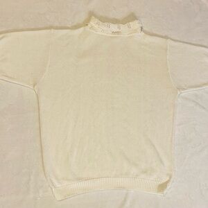 Vintage knit sweater with sleeves and babydoll collar in cream size M EUC
