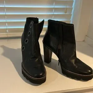 Never worn, minor flaw on heel platform leather booties by Gadea. Size 7. Unique and beautiful with great bottom grip souls.