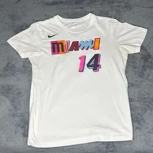 This Nike kids' t-shirt features a vibrant Miami graphic on a classic white background. Perfect for casual wear, it combines comfort with style.
