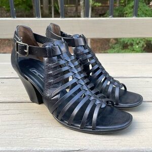 Paul Green Christy Black Caged Strappy Heels Sandals Shoes size 9