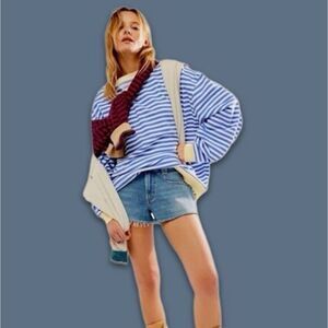 Free People Classic Striped Oversized Crewneck Sweatshirt
