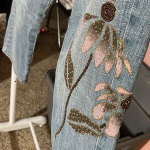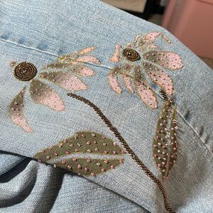 EUC Z. CAVARICCI VINTAGE SZ 8 CAPRI WITH EMBROIDERY & BEADED FLORAL DESIGN.