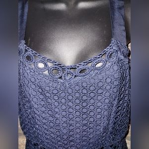 Aqua navy blue circle lace, eyelet, dress with cutouts, size medium
