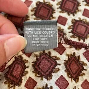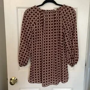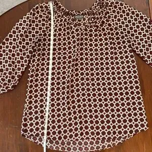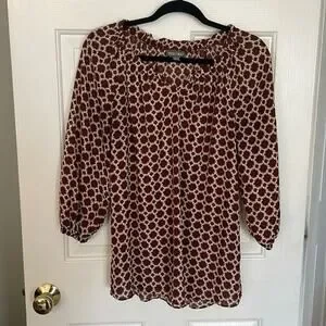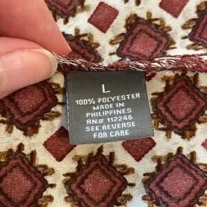 Roz & Ali Womens Blouse Large Geometric Diamond Red Cream 3/4 Length Sleeve