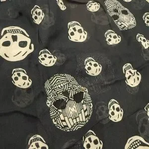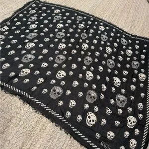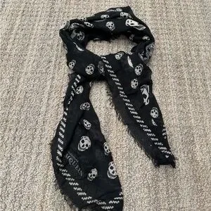 Elevate your style with the Alexander McQueen black skull scarf. This accessory adds a bold touch to any outfit. Pre owned condition see pictures