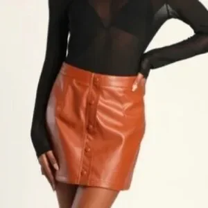 Lulu’s NWT Most Fab Vegan Leather Button-Front Lined Mini Skirt Clay Brown Sz L