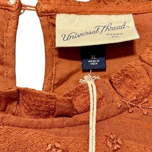 UNIVERSAL THREAD 100% Cotton Embroidered Ruffled Hem Puff Sleeve Babydoll Dress